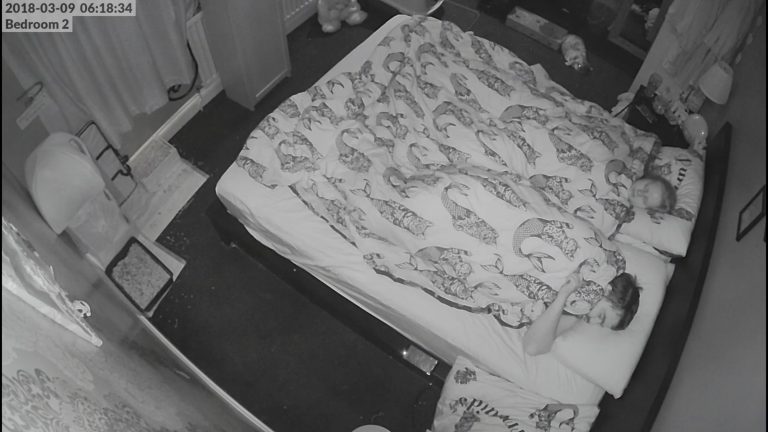 “He’s so cute that you just can’t be mad at him, Kim was slightly grumpier hence her comment, but to be fair he did jump on her face. After this I did manage to get back to sleep. I only checked the footage the next day because I vaguely remembered waking up.”