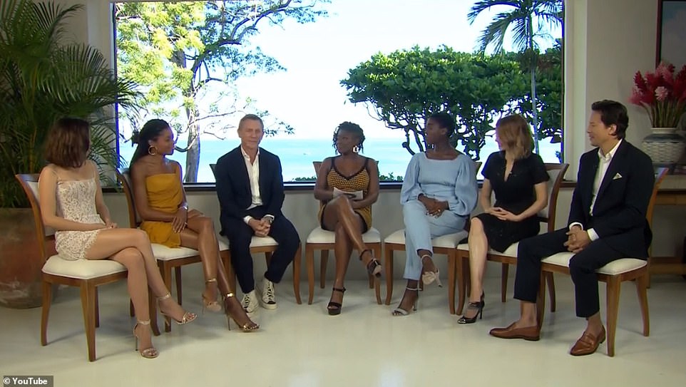 The 37-year-old said via video link: ‘Hi everyone, this is Rami Malek and I’m not jealous one bit that you’re all in the absolutely stunning setting of Ian Fleming’s iconic Caribbean home Goldeneye, on the island of Jamaica.’