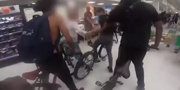 The yobs were seen knocking items off the racks and narrowly missing shoppers. A member of the public shouted in retaliation that the boys did not even care to which one of the youths stood up to cycle and laughed.