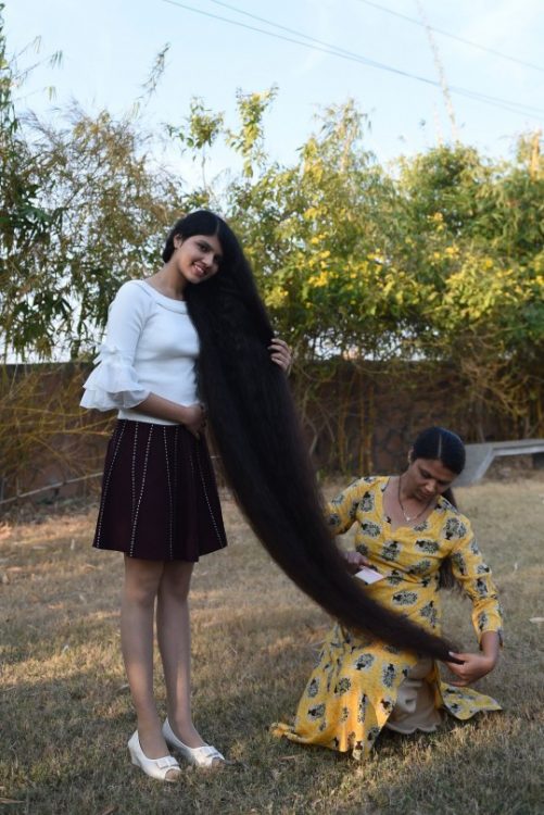 17-year-old Nilanshi Patel from Modasa, India has hair that measures (190cm) 6ft 2in long. Her locks have grown 20cm since it was last measured in November.