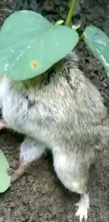 The poor animal seemed to be in immense pain as it struggled to move with the plant growing out of its back. It also didn’t try to escape when the people tried to approach and inspect it. They turned the rodent over by its tail to examine its body.