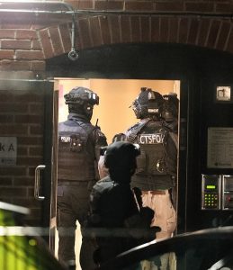 ‘It is thought there was one attacker who has surrendered to police. It appears the attack was stopped when a lone sergeant, who responded when the alarm was raised, ran to the scene, saw the attacker running away with a knife and rugby tackled him to the ground.