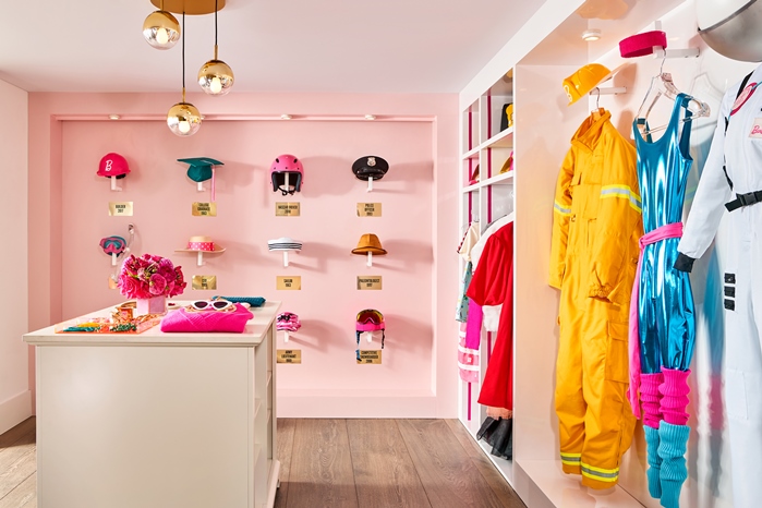 One of the amazing features of the Barbie dream house is the walk-in closet, which is filled with life-sized Barbie clothes.