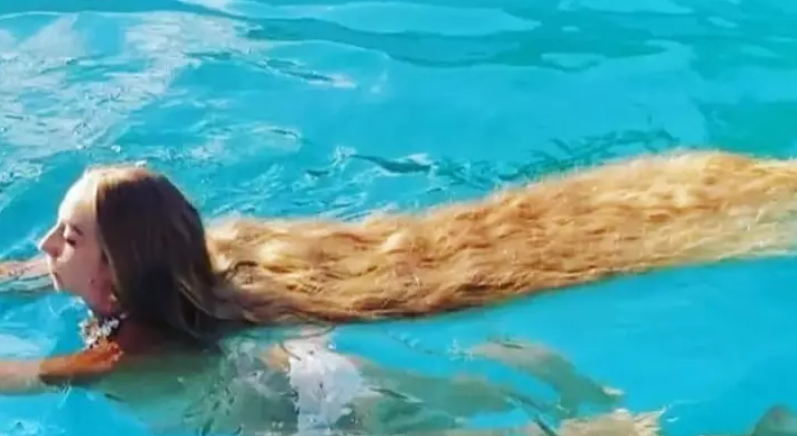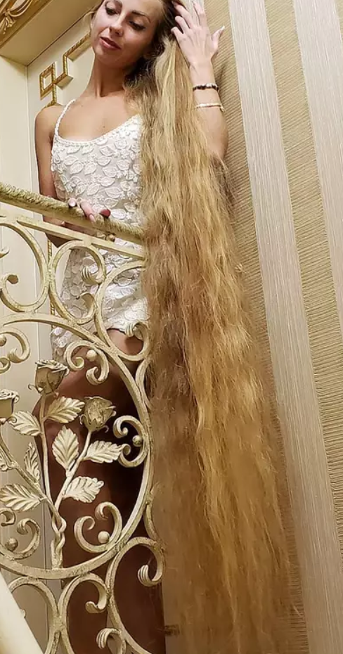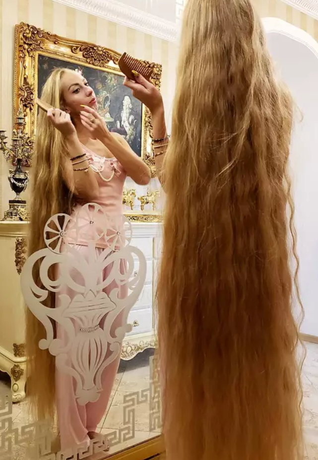 She is literally living a princess fantasy with hair that measures 1.8 meters long. They are so long that they touch the floor when she walks.