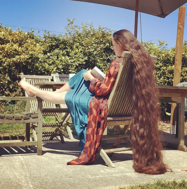 32-year-old Frankie Cluney, from Brighton, England has six-foot-long hair that she has been growing since she was six years old.