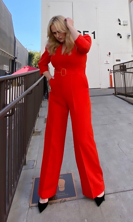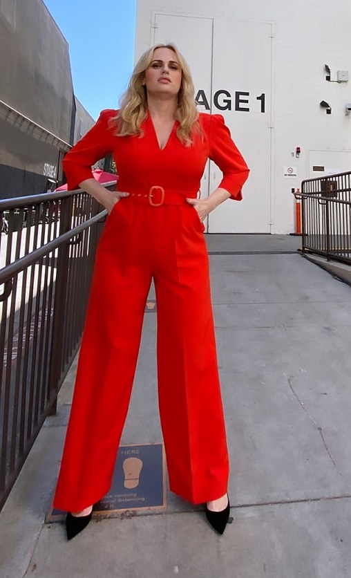 Rebel Wilson once again managed to wow her fans as she showed off her fit figure while wearing a tight, red jumpsuit.