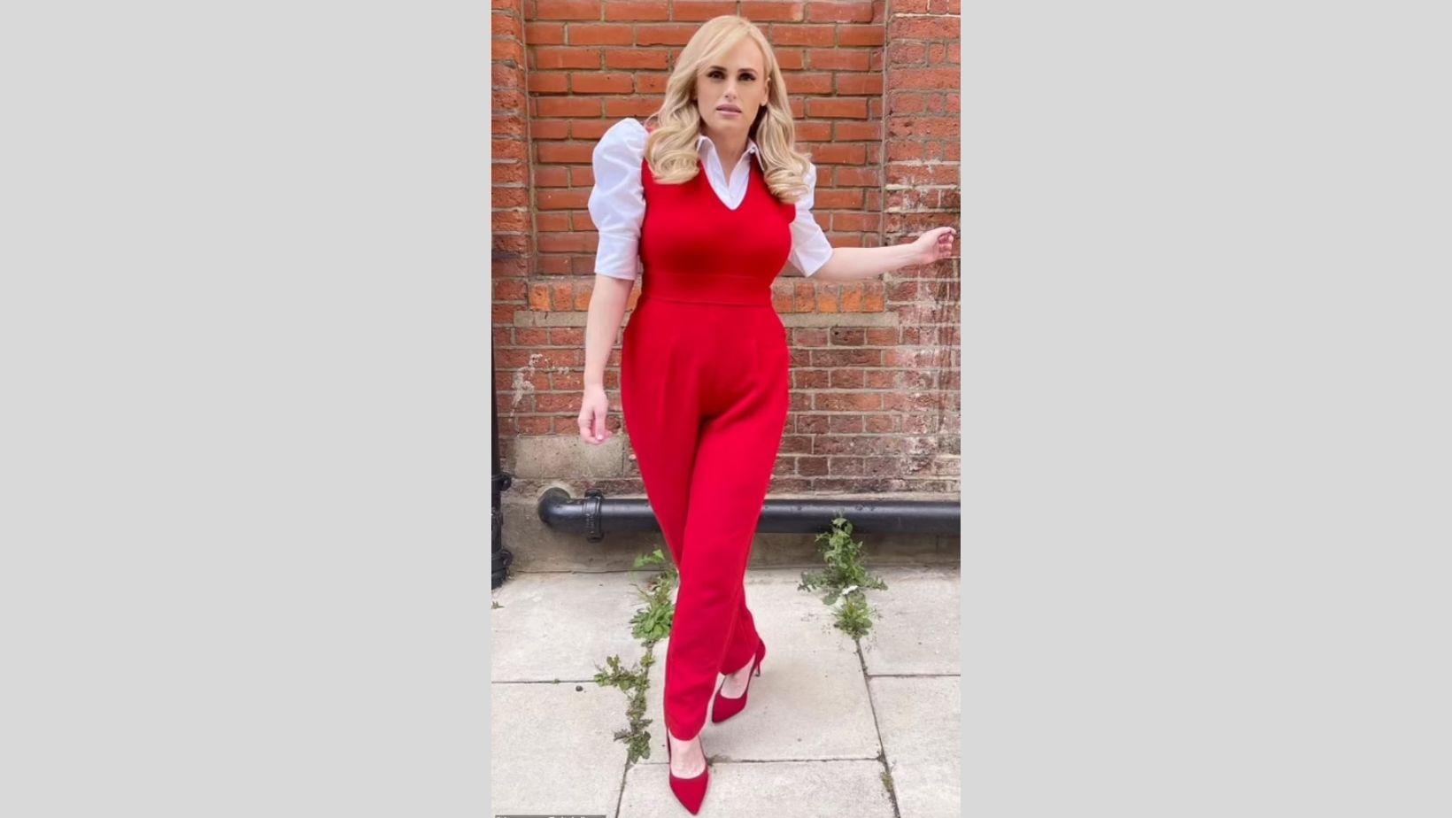 On Sunday, Rebel Wilson flaunts her stunning body transformation on Instagram, wearing a red-hot body-hugging jumpsuit.