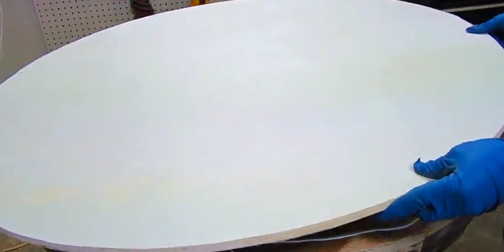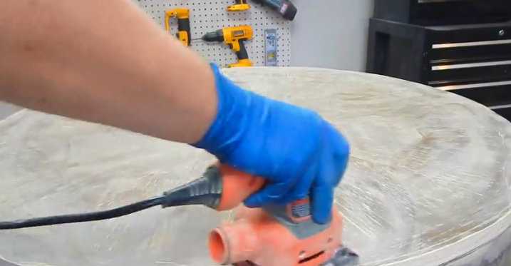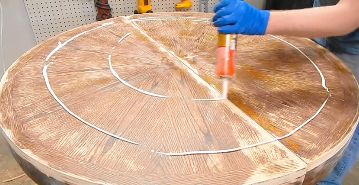 Clean up the table to make it smooth for the renovation and then put a circular shaped wood on the upper end.