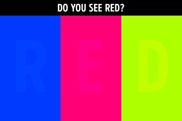 Most people can only see blue, pink, and a yellowish-green color also known as chartreuse. But where’s red? There’s definitely no sign of it at first glance.
