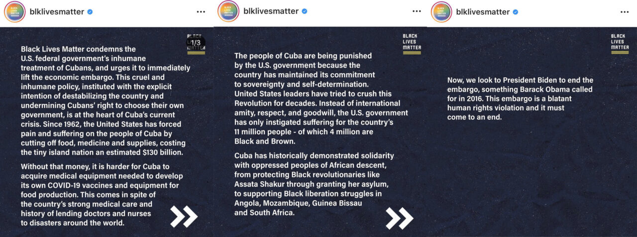 On the other hand, the BLM movement released a statement on Wednesday which condemned America for the fiasco taking place at the Cuban nation and hence even went forward to put the blame on the US for igniting flames and causing unrest on Cuban streets that left dozens injured and one dead.