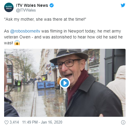 The video clip shows Mr. Filer saying to Rob: “Oh, I’ve been here all my life. I’m 100 years old.”