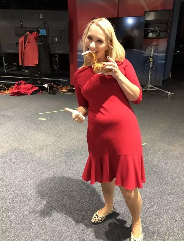 A weather reporter has struck back at the hater who confronted her about her bulging belly and told her to wear extra clothes to hide her stomach overhang.