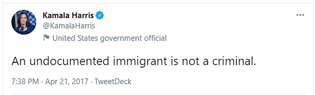 In April 2017, she tweeted: “An undocumented immigrant is not a criminal.”