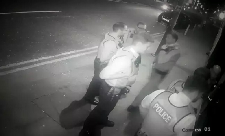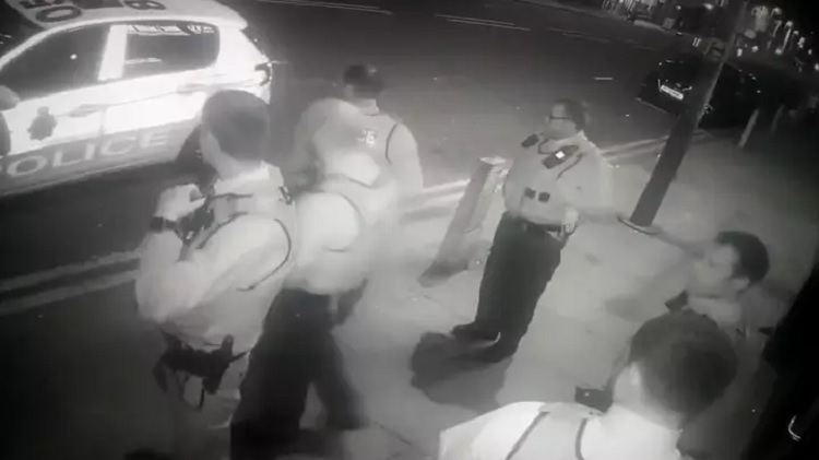 The CCTV footage at Hot Water Comedy Club in Liverpool showed a couple of officers arriving about 9:30 pm on March 28. They banged on the door and rang the bell but naturally, no one was there as the staff was all safe at home.