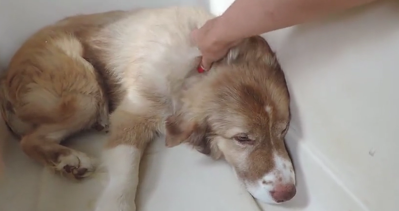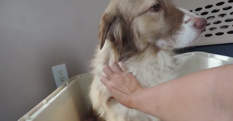 She turns on the camera and recorded this beautiful moment where the rescue dog’s first recovery process began. Her goals are to make the pup more accustomed to the human touch and be freer.