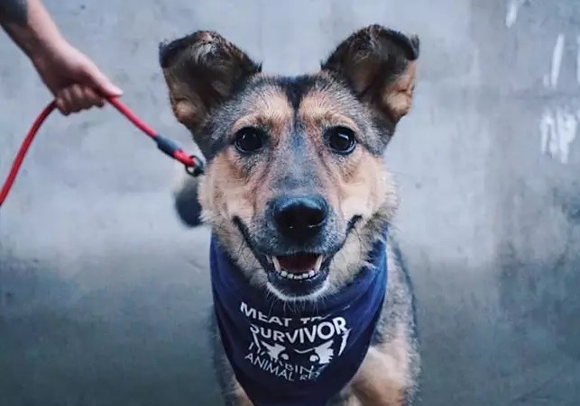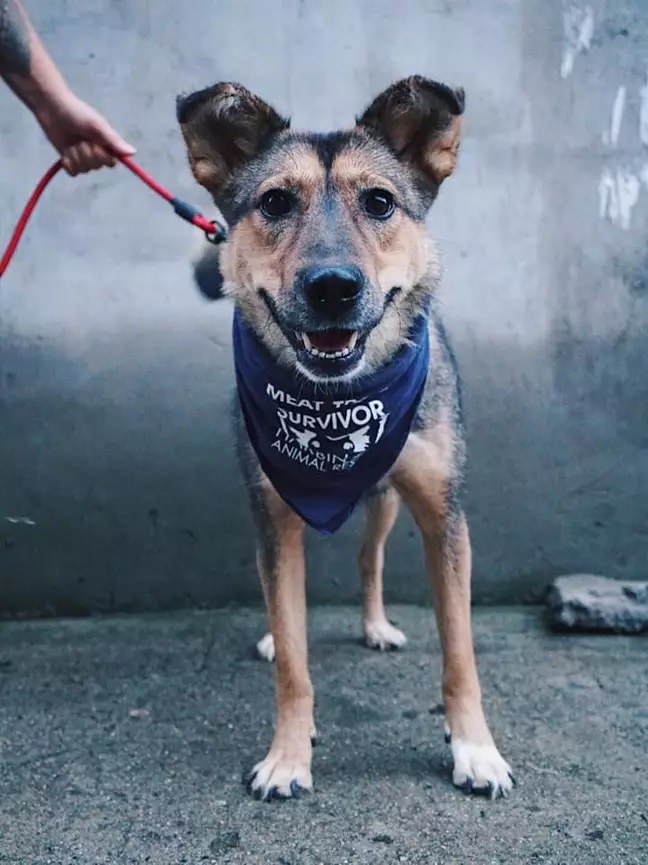 A dog has become a service animal after getting rescued from a truck that was destined to deliver hundreds of dogs to a meat market in China.