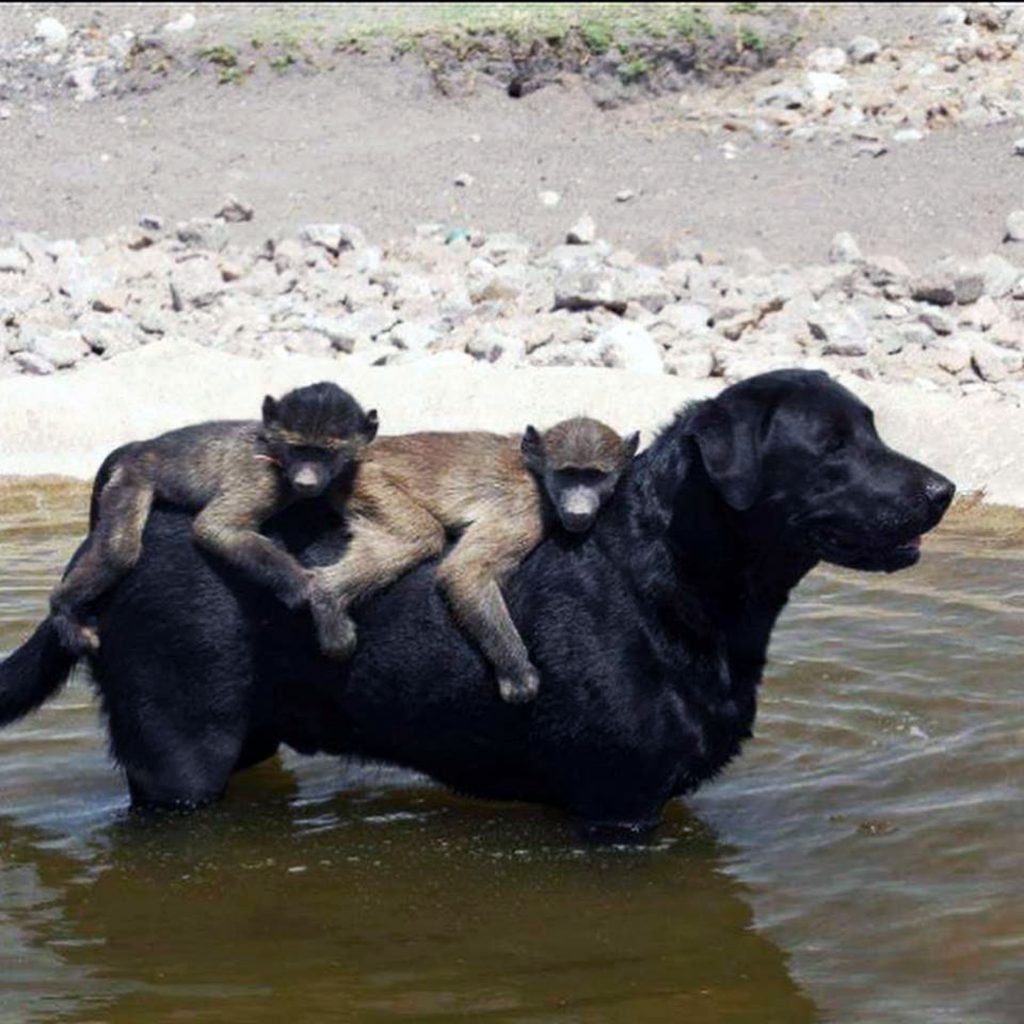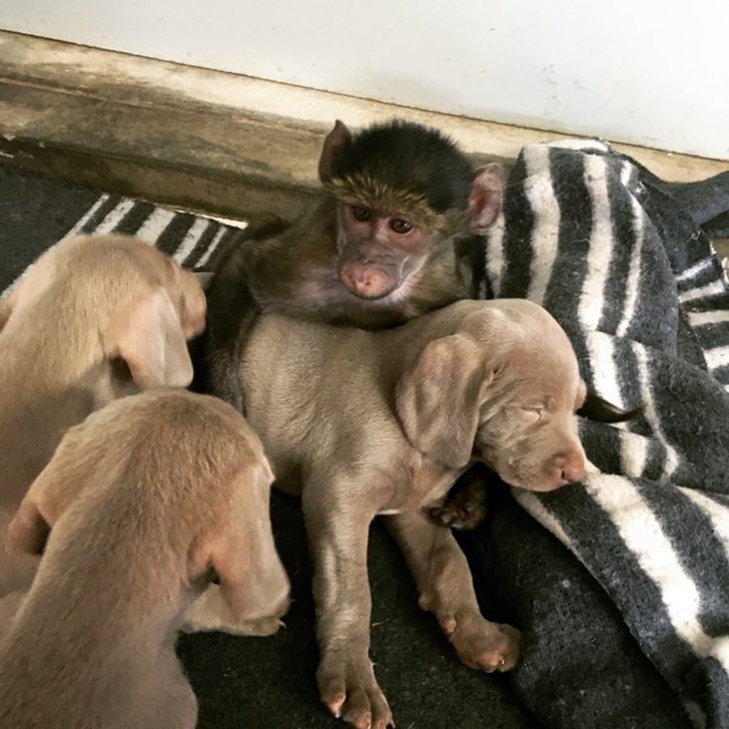 “It often happens that orphaned Baboons gets close to the dogs on the farm. They will grow up with these dogs who will act as a comfort since the orphaned babies need to be cared for,” 23-year-old Siff Carlsen of the animal sanctuary said.