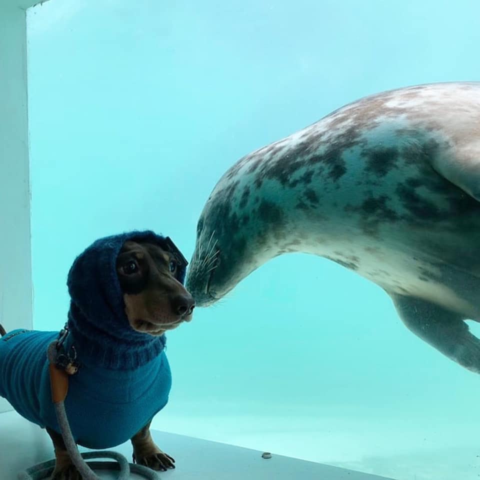The unusual friendship took place at Sea Life Trust Cornish Seal Sanctuary where Aayla the rescue seal instantly picked interest in Stanley the dachshund due to the dog’s seal-like appearance.
