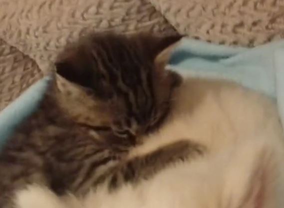 This caring family has nurtured him for a while now. Now, he is a healthy kitten and no longer a rescued kitten who is scared all the time.