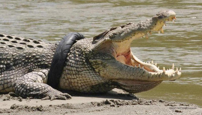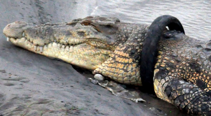 Although the crocodile is already 13 feet long, there is a chance that it will grow even more and when that happens, the ring of the tire will suffocate the poor creature. The tire had already been in the neck of this crocodile for 3 years.