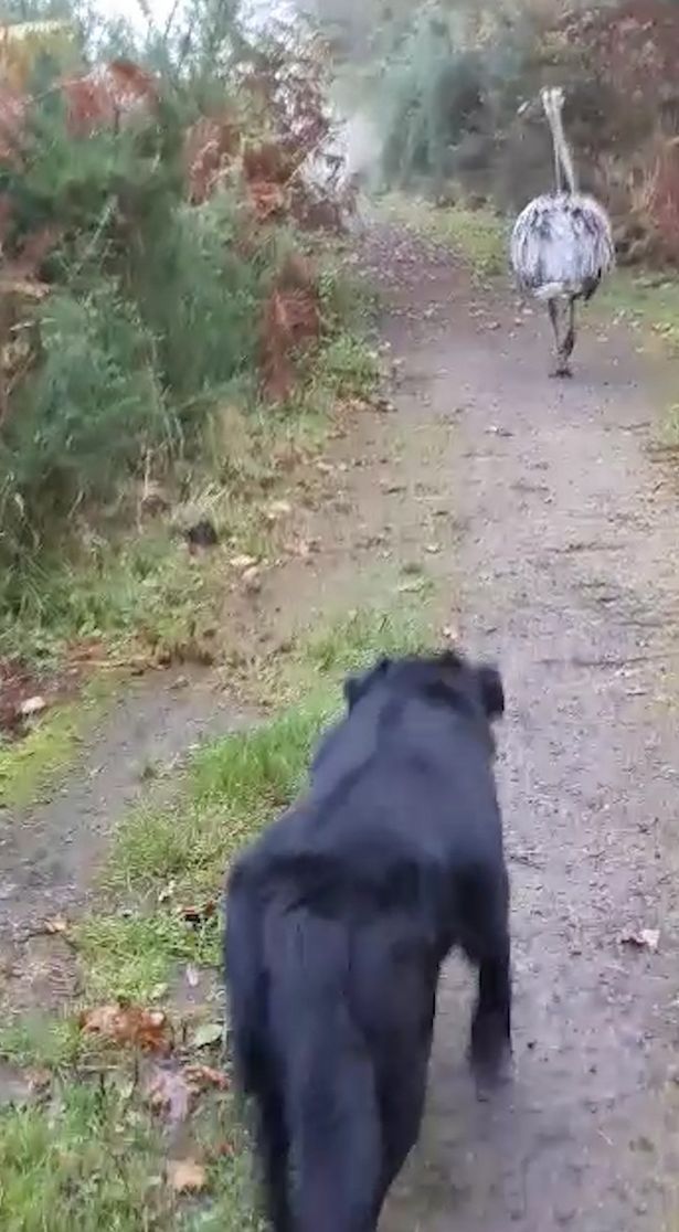 He filmed the 6ft Rhea bird who then ran off.