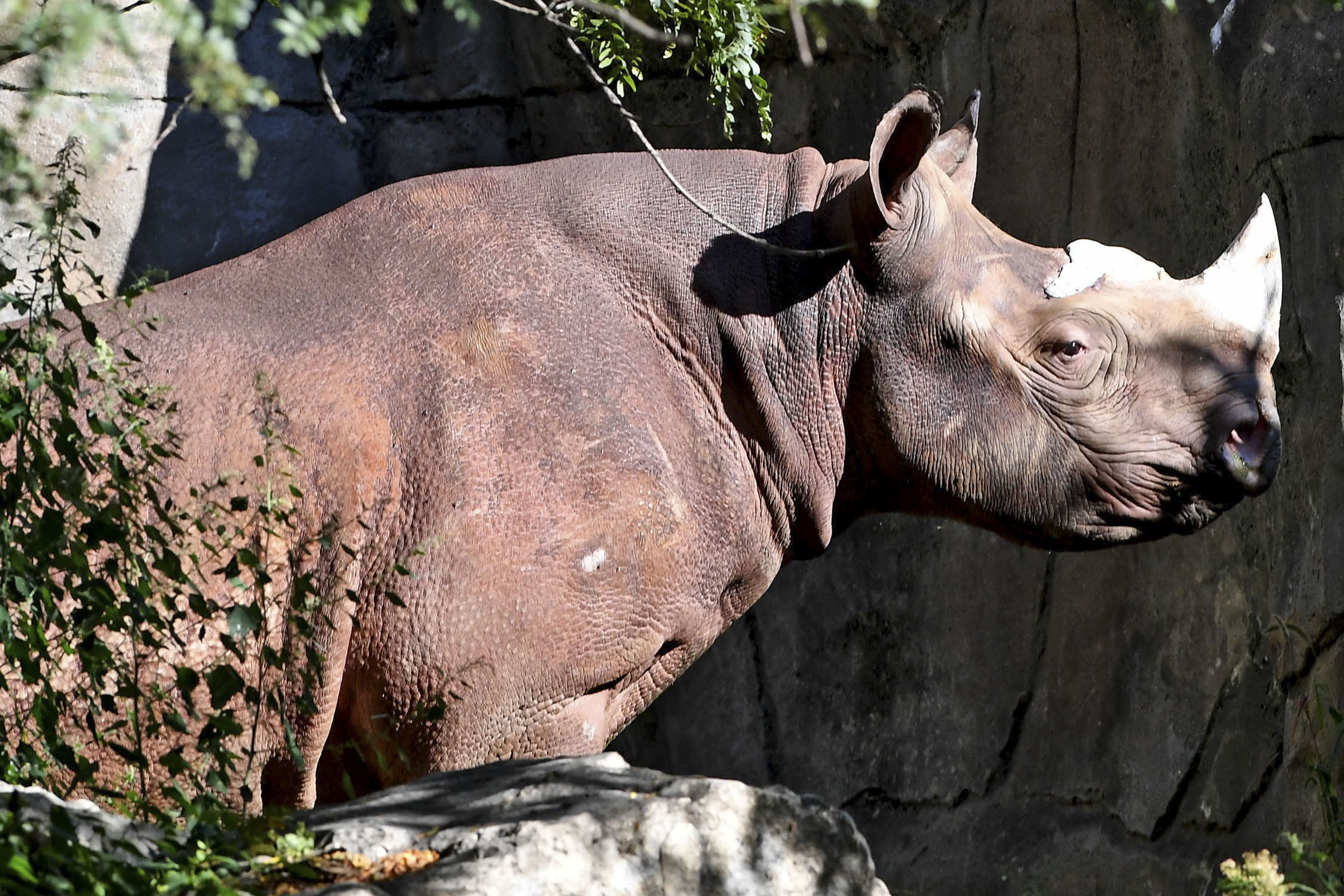 An eight-year-old eastern black rhinoceros with a blocked nose had a CAT scan before undergoing surgery to cure blocked nose.
