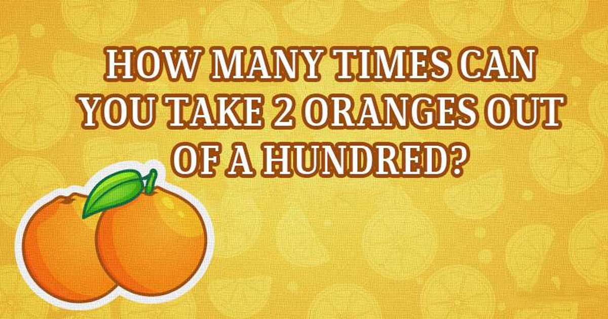The riddle asks one fairly simple question! How many times do you think you can take TWO oranges out of a pack that comprises 100. Those who think outside the box will succeed.