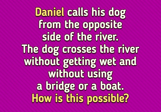 “Daniel calls his dog from the opposite side of the river. The dog crosses the river without getting wet and without using a bridge or a boat. How is this possible?”