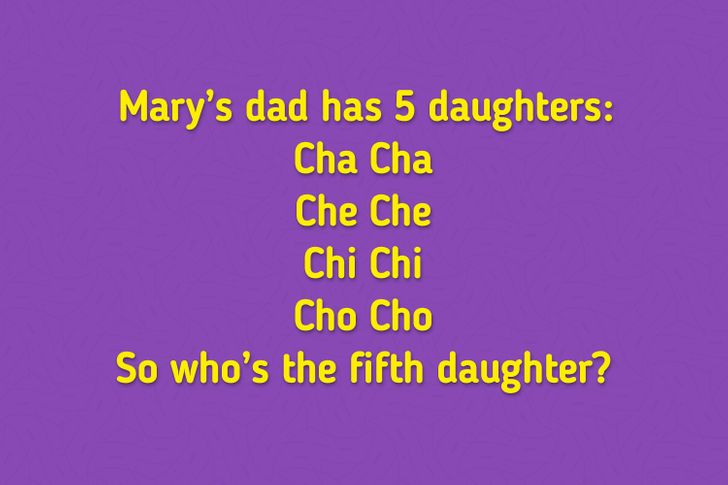 Mary’s dad has 5 daughters: Cha Cha, Che Che, Chi Chi, Cho Cho. So who’s the fifth daughter?