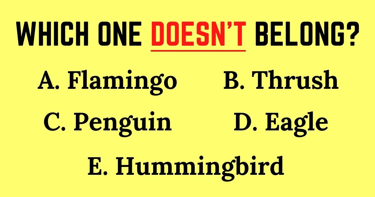 As seen in the picture above, your first objective is to find out which of the five animals, including an eagle, thrush, hummingbird, penguin, and flamingo, doesn’t belong in this group.