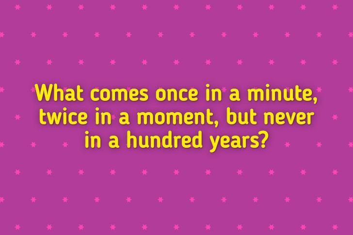 “What comes once in a minute, twice in a moment, but never in a hundred years?”