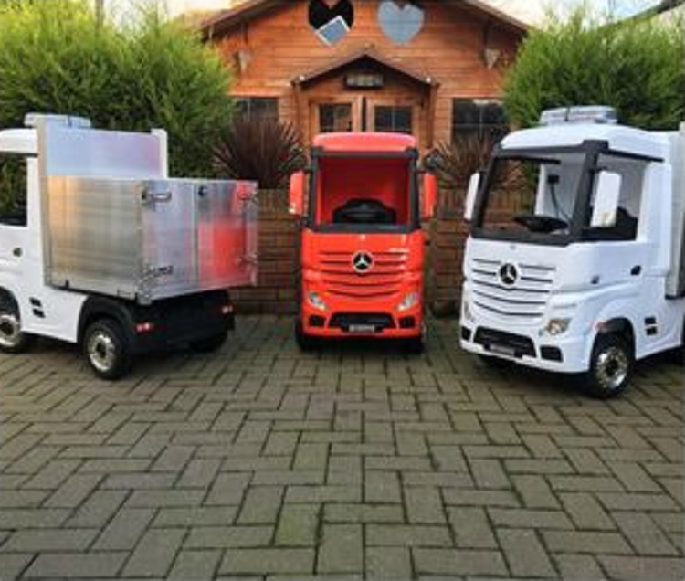 He explained: “I make these to order, about two weeks waiting time, £690($900) for the 24-volt battery-operated 4wd lorry with plank aluminum body and flashing safety lights as pictured, red, black, blue or white, £570($750) without the lights.