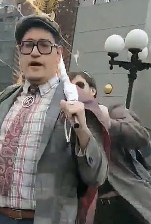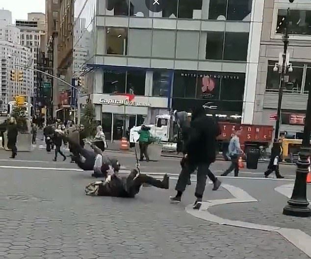 Moments before the incident, the Brooklyn-based activist was heard arguing with a couple who told him: “Maybe we should cover our faces and you might f**k off.”