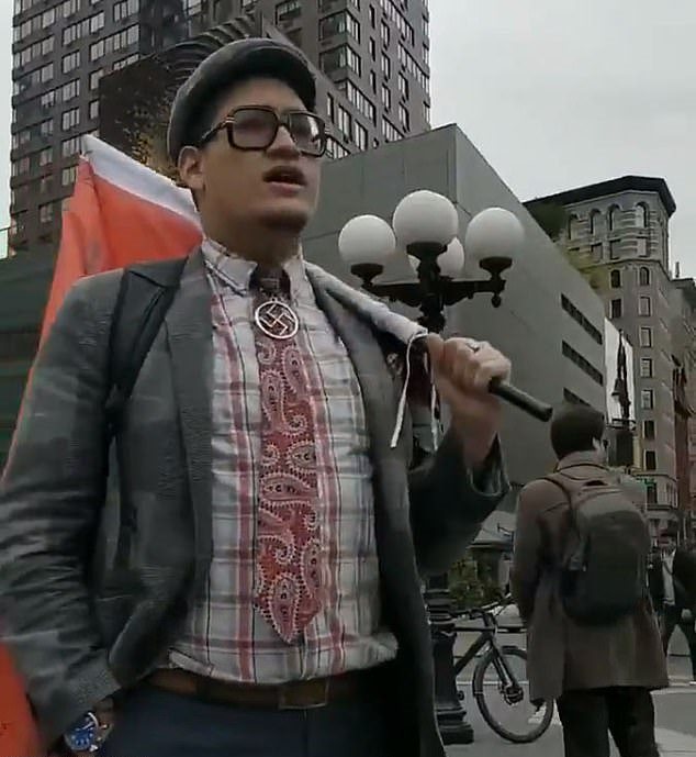 26-year-old Jovanni Valle is an avid activist and a passionate Trump supporter who wore a swastika necklace as he went on a one-man protest in Manhattan to publicize his beliefs.