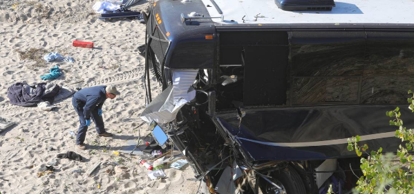 Two members of the road crew fell out of the bus out of which one died. The others suffered injuries too.