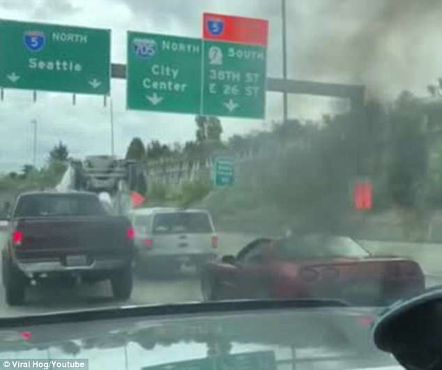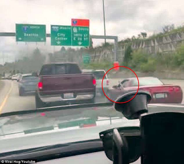 “I was driving through traffic near Seattle and noticed a Corvette not wanting to let a Dodge merge over into the lane, so the Dodge pulled beside him,” the guy who recorded the clip wrote on YouTube.