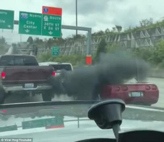 “As the Corvette driver was rolling down his window and went to flip him off, the Dodge owner coaled him with so much smoke you couldn’t even see the driver in the car. He did end up letting the truck over.”