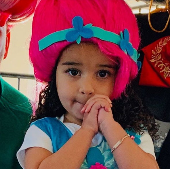 To celebrate Halloween, Rob and his two-and-a-half-year-old daughter dressed up as Papa and Poppy Troll from DreamWorks’ film, completing their look with pink wigs as seen in the movie.