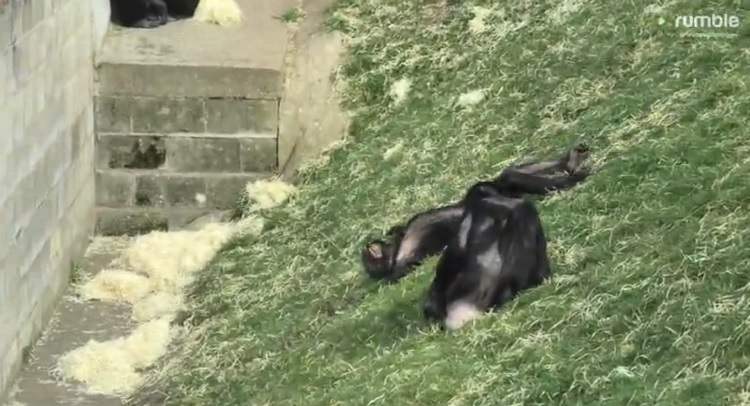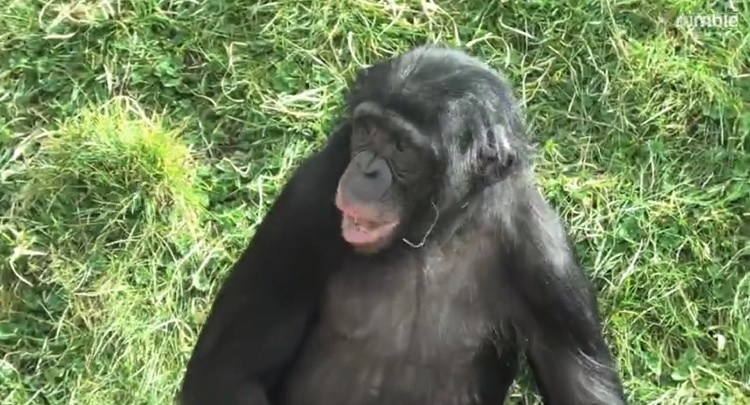 At heart, they have playful souls with caring personalities and all those qualities are in evidence with the Bonobo having the time of his life on his impromptu slide.