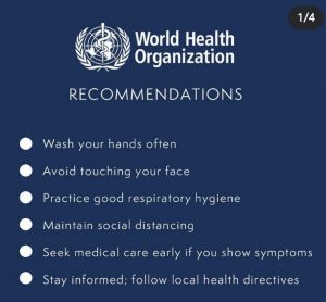 On top of their posts they included a picture from the WHO, arguing for the obvious: Wash your hands, avoid touching your face, maintain social distancing, etc.