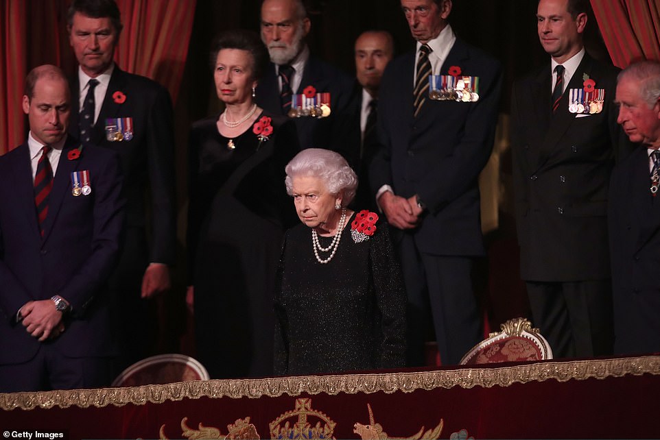 The Festival of Remembrance took place on Saturday evening at the Royal Albert Hall. The Majesty herself wore no less than five poppies which were fastened on a large brooch.