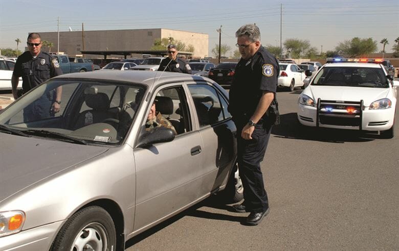 “I can hear her screaming obscenities over the idling truck from inside her car. The officer promptly walks up to the door of the car and orders her out.