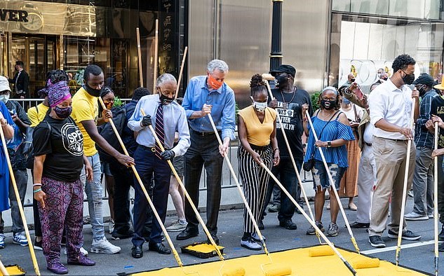 “He’s putting “Black Lives Matter” in front of the president’s personal residence. The president he wants to …help bail out New York – (he) is only is a communist but is a stupid one,” he said. “I thought he was the worst mayor in the history of the city, now he will have written that like a headline in history.