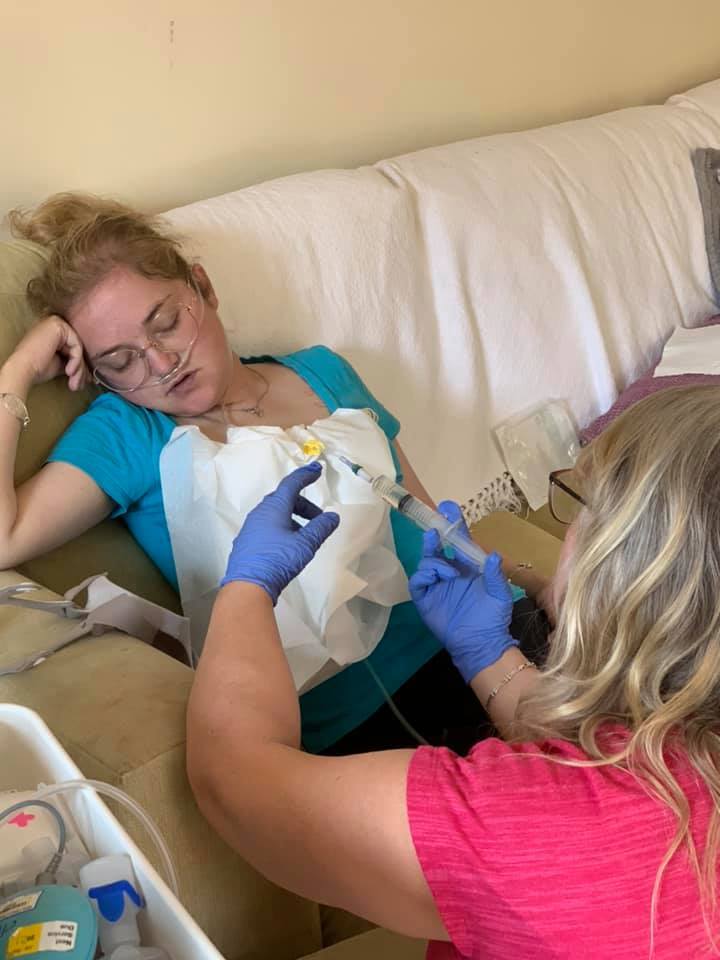 Chelsie is staying at her home instead of a hospital because hospital wards are being used for coronavirus patients and she is currently not being treated.