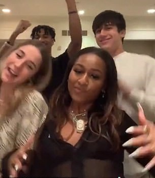 In the clip, Sasha can be seen singing along to the Adderall (Corvette Corvette) by Pop Hunna while dancing with her six friends.