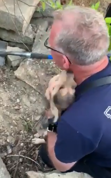 A video was posted on social media where the firefighter was shown rescuing the little puppy.