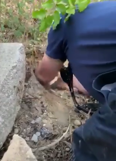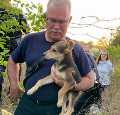 Capt. Paul Bryant along with his crew members received a call on March 30. A group of bikers had called seeking help as they had found a puppy that was buried under a pile of stones which was difficult for them to remove on their own.