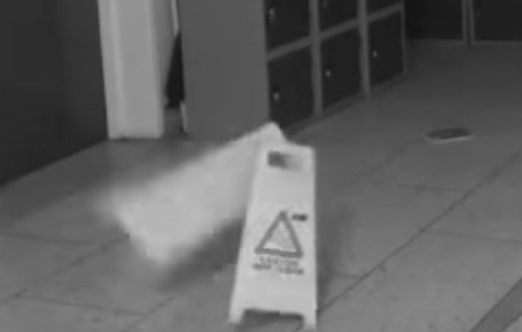 But the activity doesn’t end here and the ‘ghost’ aggressively slams a wet floor sign to the ground before the video comes to an end.