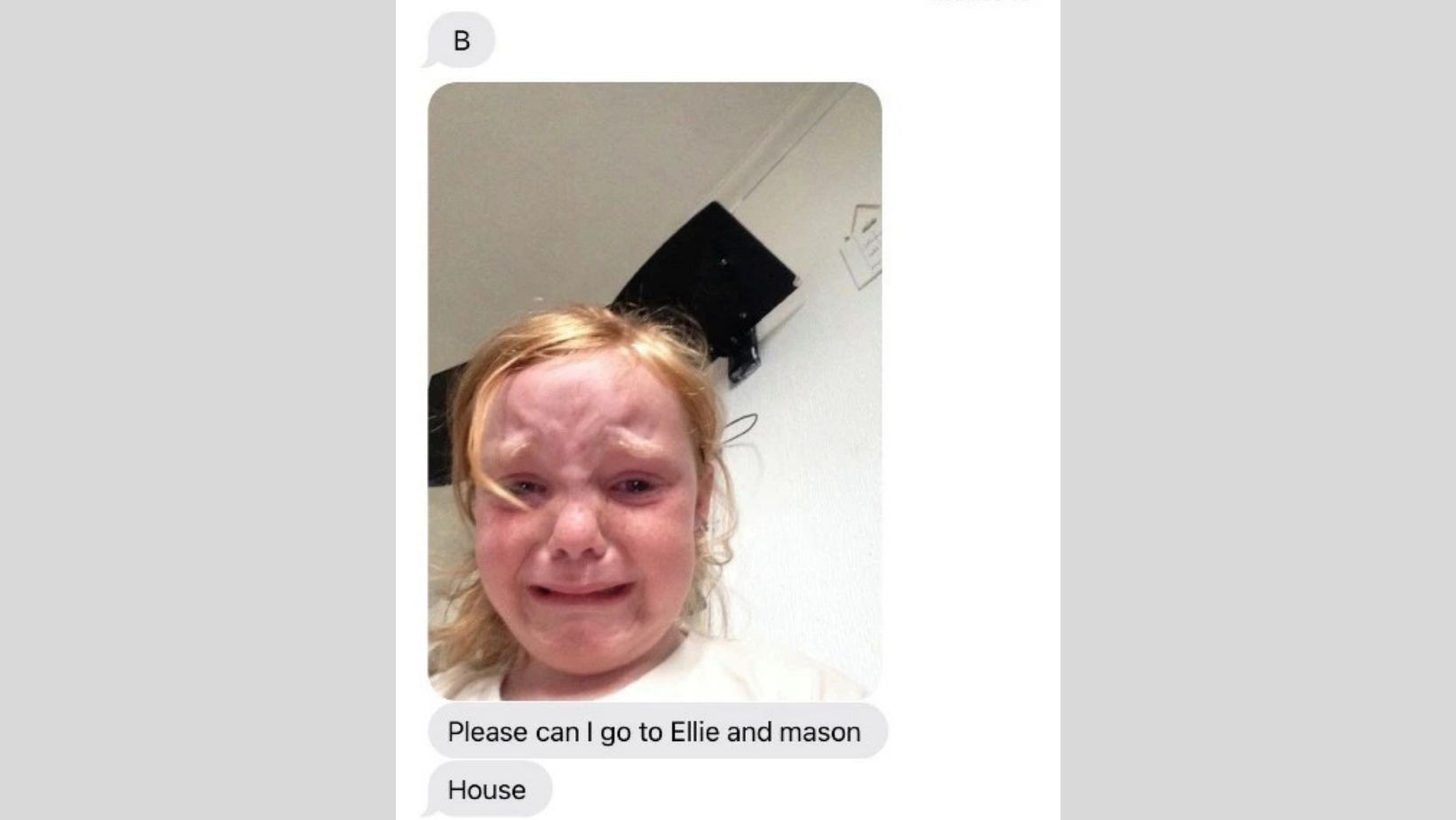Katy Dorman, 25, was amused when her daughter Mercedes, 8, sent tearful snaps along with her request to go to her friends’ house on a Sunday night.