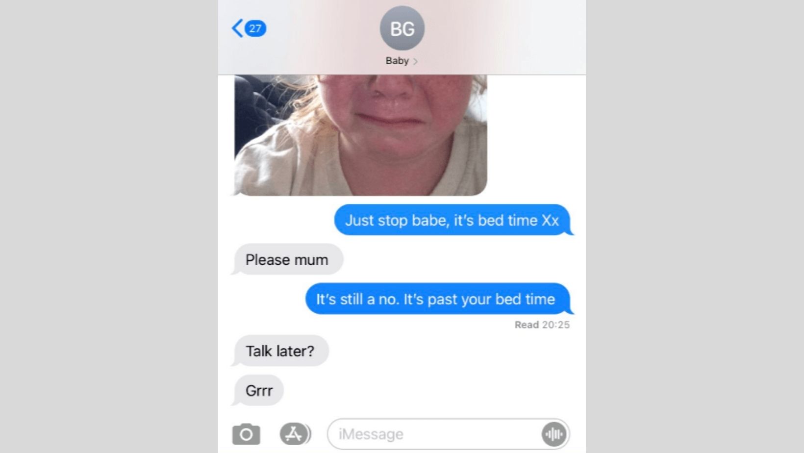 But even though the youngster was told that it was past her bedtime and she has to go to sleep, she still sent her mom another adorable crying selfie.